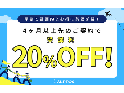 英語学校アルプロスの人気4プログラムを、今だけの「早割」価格で受講できるチャンスなキャンペーンを実施中です!