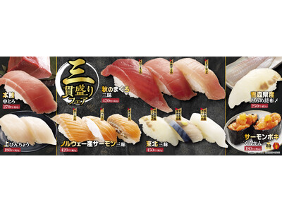 1皿にこだわりを詰め込んだ『三貫盛りフェア』を、全国の魚べい・元気寿司で2025年11月7日(金)より開催いたします。