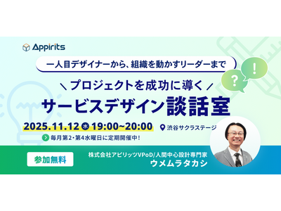 株式会社アピリッツは、2025年11月12日(水)、「【一人目デザイナーから、組織を動かすリーダーまで】プロジェクトを成功に導くサービスデザイン談話室」を開催いたします。
