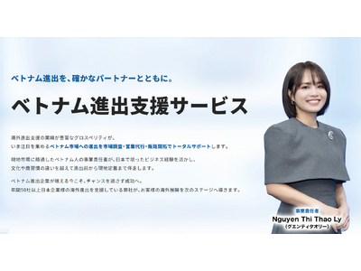 当事業においては、日本企業での勤務経験や、日本商材の海外展開の支援経験も豊富なベトナム人人材の、Nguyen Thi Thao Ly(グエンティタオリー)が事業責任者を務めることで、現地市場に高い精度でローカライズしながらベトナム進出を推進できる体制でサポートいたします。