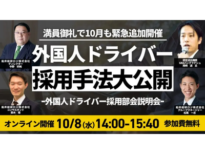 日本最大級の物流コンサルティングファーム 船井総研ロジ株式会社(本社:東京都中央区、代表:橋本直行、以下「船井総研ロジ」)は、2025年10月8日(水)に運送会社・物流会社の経営者の方を対象にした「外国人ドライバー戦力化部会説明会」をオンラインで開催いたしました。