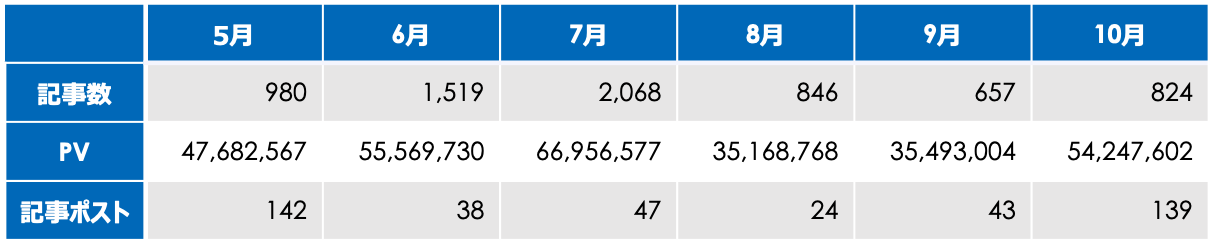 「ファクトチェック」の語を含むPVの推移(5~10月)