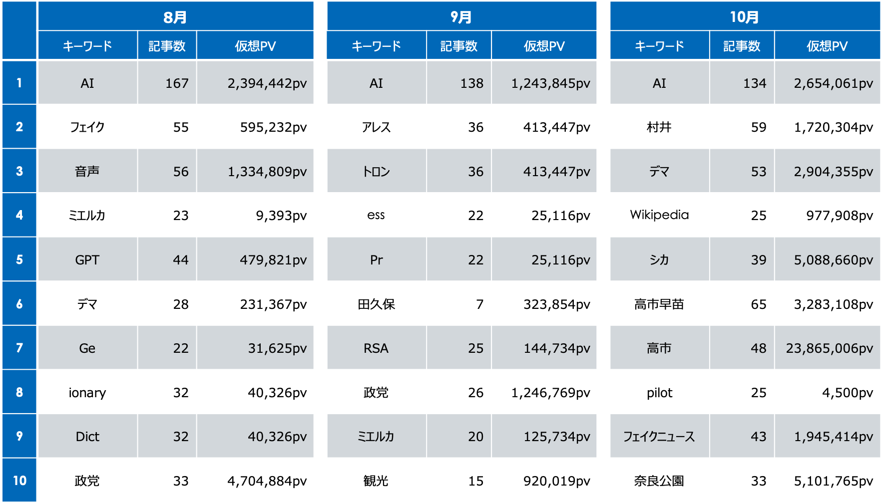 2025年8~10月の「ファクトチェック」関連トレンドワードランキング