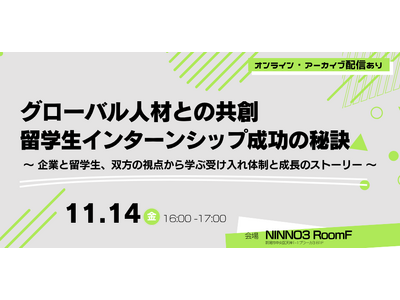 「グローバル人材との共創:留学生インターンシップ成功の秘訣~企業と留学生、双方の視点から学ぶ受け入れ体制と成長のストーリー~」を11月14日に開催します。