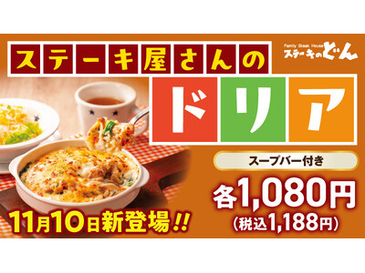 株式会社アークミール(本社:埼玉県さいたま市、代表取締役社長:柳 先)が運営するステーキレストラン「ステーキのどん」では、2025年11月10日(月)より、心も体も温まる冬の新メニュー「ステーキ屋さんのドリア」3品を全国62店舗で販売開始いたします。