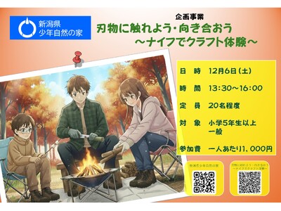 新潟県少年自然の家では令和7年12月6日(土)13:30 ~16:00にナイフを使った体験イベントを開催します。焚き火で暖まりながらのまったりクラフト体験はいかがですか?