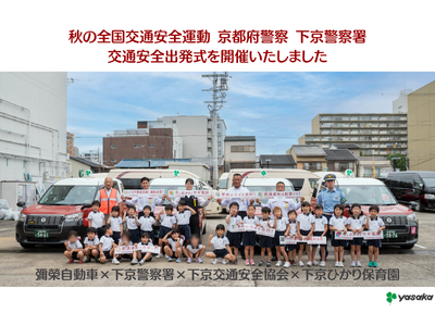 2025年9月21日から30日にかけて実施された「秋の全国交通安全運動」にあわせ、彌榮自動車株式会社(ヤサカグループ本社)は京都府下京警察署、(一財)京都府交通安全協会下京交通安全協会、下京ひかり保育園(京都市下京区)と共同で「交通安全出発式」を9月25日に彌榮自動車中央営業センターで開催しましたことをお知らせいたします。