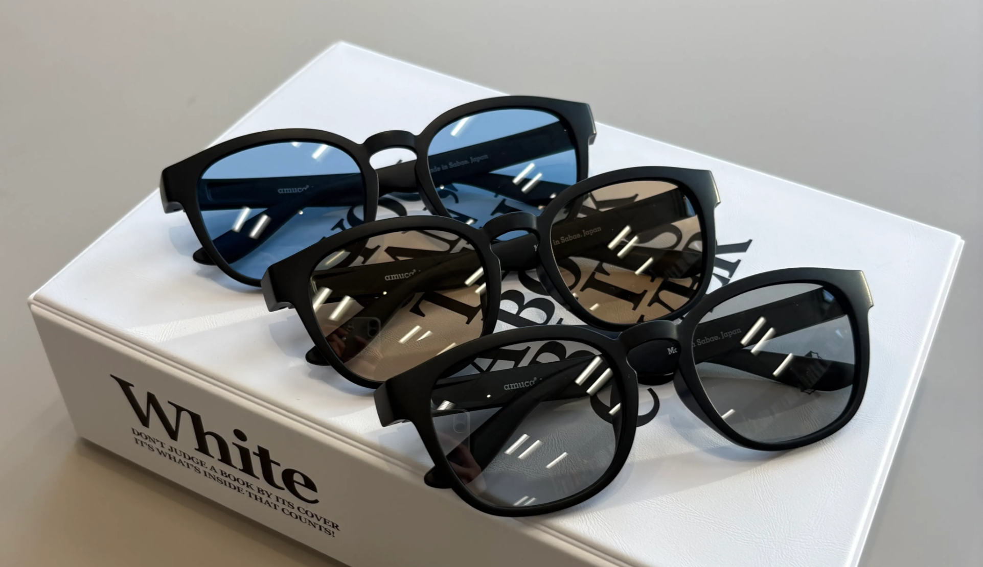 本製品は、石垣島でマグロ延縄漁で使用されていたテグスを再資源化したamuca(R) PA をフレーム部分に採用しています。フレームの成形・仕上げは、眼鏡の世界的な産地として知られる福井県鯖江市で行いました。