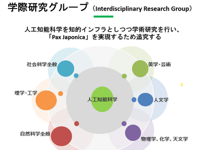 弊研究所では2023年4月に「学際研究グループ(Interdisciplinary Research Group)」を正式に立ち上げ、博士課程修了ないし博士号取得者である国内外の研究者たちにより「パックス・ジャポニカ(Pax Japonica)」の実現に向け様々な角度からの研究を実施しています。人工知能科学を知的インフラとしつつ学術研究を行い「Pax Japonica」を実現に向けて特定の科学分野に偏ることなく学術的な目線で研究しています。