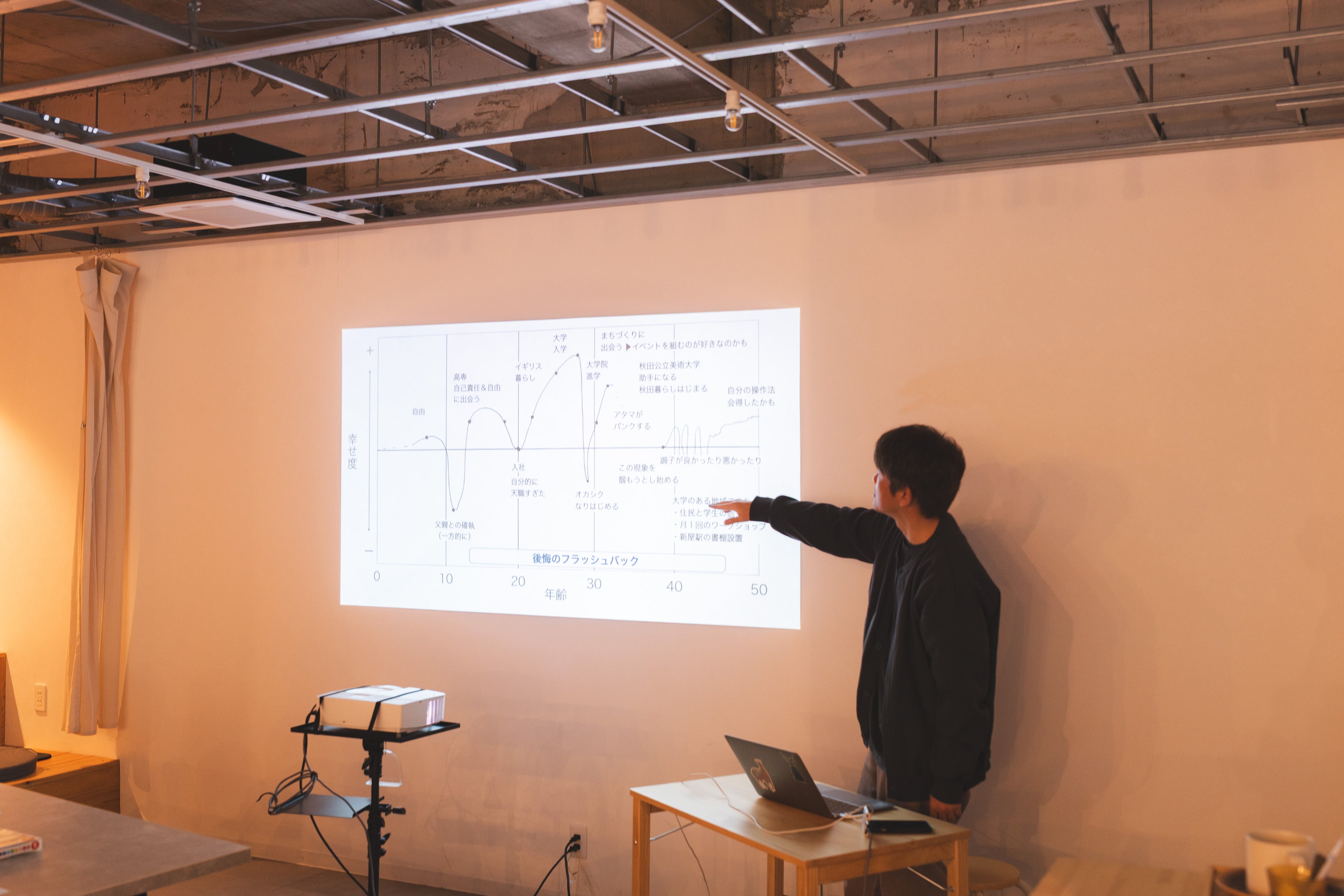 本カリキュラムは、秋田で働く方々の生き方や価値観に触れながら、参加者一人ひとりが「自分らしい生き方」について考えるきっかけをつくるプログラムです。今回は、NPO法人アーツセンターあきたのディレクター田村剛さんをお招きし、田村さんのこれまでの生き方や価値観についてお話しいただきました。