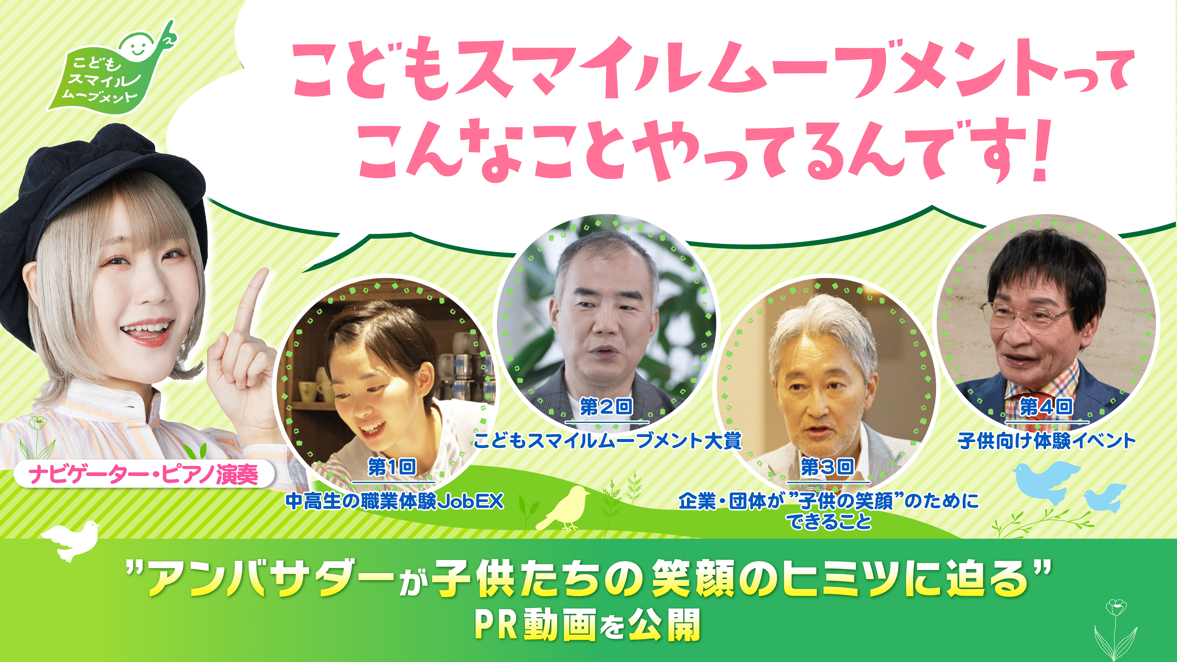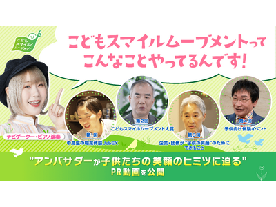 「こどもスマイルムーブメント」に参画している企業・団体の活動を通して、こどもスマイルムーブメントの各事業をアンバサダーがわかりやすくご紹介します。全4回の動画のナビゲート役はハラミちゃんが務め、オープニング、エンディングではオリジナルのピアノ演奏も披露されますので、ぜひ本PR動画にご注目ください。