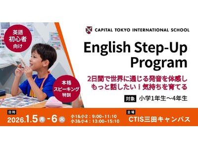 CTISは2026年1月5日(月)・6日(火)の2日間、小1~小4向けの英語初心者向けレッスンを行います。カタカナ英語の発音癖がつく前に、正しい英語の発音とリズムを楽しみながら練習しましょう!