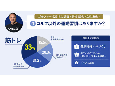 フィットネスブランド「VALX(バルクス)」を展開するVALX株式会社(本社:東京都渋谷区、代表取締役:只石昌幸、以下VALX)は、業務提携先である株式会社SMART GOLF( https://sma-gol.com/ )と共同で、ゴルファー921名を対象に「ゴルファーの運動習慣およびプロテイン需要に関するアンケート調査」を実施しました。その結果をお知らせいたします。