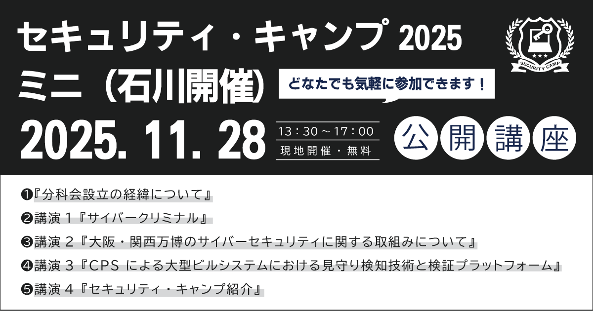 イベント詳細:https://www.security-camp.or.jp/minicamp/ishikawa2025.html