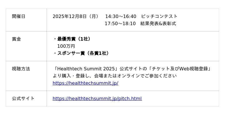 ~「Healthtech Summit 2025」ピッチファイナル、12月8日開催へ~