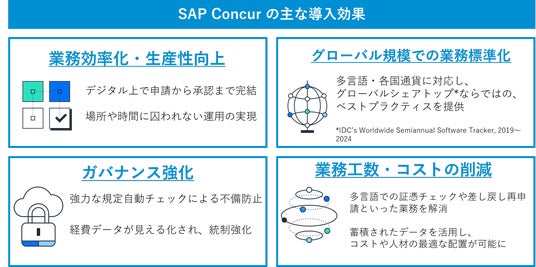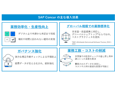 SAP Concurは、出張、経費、請求書管理を統合したソリューションを提供する世界有数のブランドであり、これらのプロセスの簡素化と自動化を追求しています。高い評価を得ているSAP Concurのモバイルアプリは、社員の出張をサポートし、経費を自動で入力し、請求書の承認を自動化します。AIを使いリアルタイムのデータを統合、分析することで、効率的な支出管理を行うことが可能です。SAP Concurのソリューションは、手間の掛かる作業をなくし、お客様の業務効率化に貢献、最高の状態でビジネスを進めることができるようサポートします。詳細はconcur.comまたはSAP Concur ブログをご覧ください。
