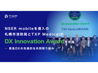 TXP Medical株式会社(本社:東京都千代田区、代表取締役CEO:園生 智弘、以下「TXP Medical」)の救急隊アプリ「NSER mobile」を利用し、2024年2月より運用を開始した札幌市消防局の「救急医療『見える化』システム」、およびTXP Medicalが、「Claris Japan Excellence Award 2025」において、それぞれ「DX Innovation Award」を受賞しました。