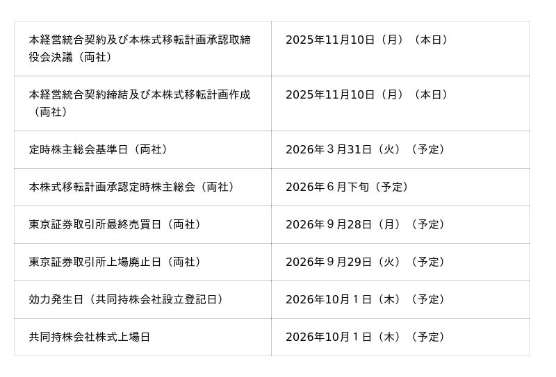 (注)上記は現時点での予定であり、本経営統合及び本株式移転の手続きの進行上の必要性その他の事由により必要な場合は、両社協議の上、日程を変更することがあります。