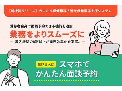 2025年8月に実施したアンケート調査にて、アンケートに回答した「カロミル保健指導」の導入機関の8割以上が業務効率の改善効果を挙げていただいていますが、今回の新機能リリースにて、煩雑な業務の一つでもあった面談予約や進捗管理の工数削減を実現し、特定保健指導業務の一層の業務効率化に貢献していきます。