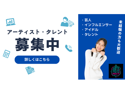 芸人・インフルエンサー・アイドル・ミュージシャン・タレントなど、ジャンルを超えた人材を広く募集。