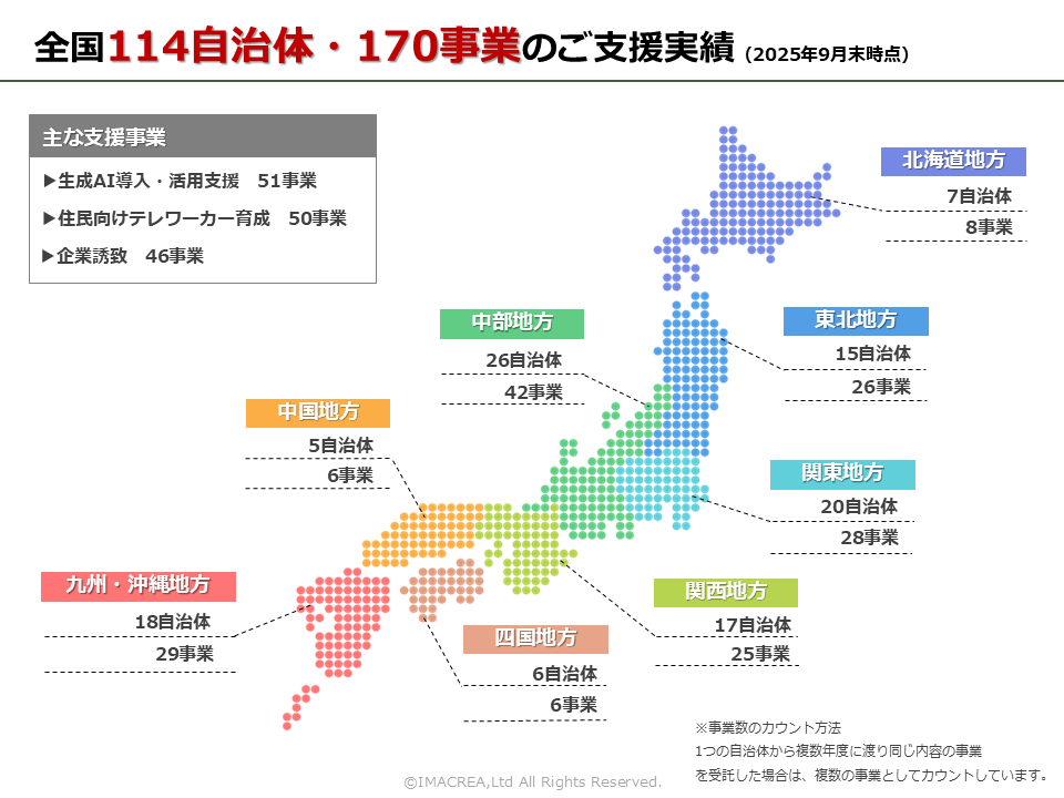 事業内容:地方創生事業、在宅ワーカー育成事業、テレワーク導入コンサルティング、コンタクトセンター運営代行事業、アウトソーシング事業、生成AI運用代行・活用支援事業