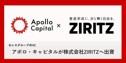 株式会社セレス(本社:東京都渋谷区、代表取締役社長:都木 聡、証券コード:3696、以下セレス)の連結子会社である株式会社アポロ・キャピタル(本社:東京都渋谷区、代表取締役社長:都木 聡、以下アポロ・キャピタル)は、資産形成プラットフォーム「StockFormer」およびAIを活用した新築アパート自動プランニングサービス「StockFormer-ZERO」を展開する株式会社ZIRITZ(本社:東京都千代田区、代表取締役:島崎 怜平、以下ZIRITZ)に対して出資を実施しましたことをお知らせいたします。