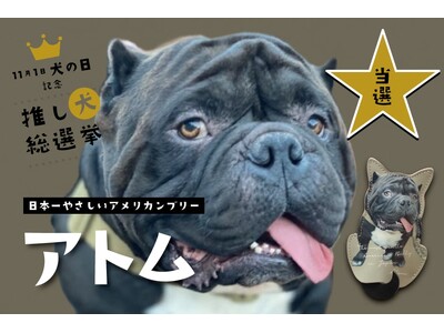 インフルエンサー16人の総フォロワー54万人が見守った「推し犬総選挙2025」。1位はアメリカンブリーのアトム。受賞を記念し、本革「愛犬キーケース」のアトムモデルを11月11日から11月30日まで期間限定で受注します。
