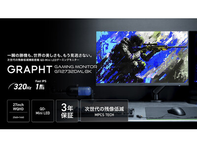 この度、毎日の当たり前をアップデートする『GRAPHT STANDARD』シリーズより、QD-Mini LEDを採用した27インチゲーミングモニター(スタンドレス/スタンド付属)を2025年11月14日(金)に発売いたします。発売に先駆け、本日11月11日(火)よりGRAPHT ECサイト(GRAPHT OFFICIAL STORE)および全国の家電量販店、PC専門店等にて予約受付を開始します。