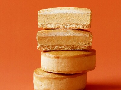 コク深いキャラメルソースに、マスカルポーネとあさぎり牛乳を合わせた、まろやかでなめらかなキャラメルクリームを、さっくり軽い食感のバターサブレでサンド。