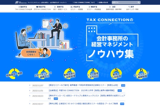 月刊TAX CONNECTIONを始め、その他有用な情報・コンテンツをホームページやメルマガにて提供。