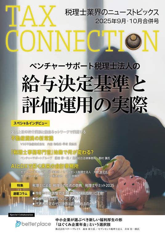 TAX CONNECTION株式会社(ベンチャーサポートグループ)(本社:東京都中央区 代表取締役:古尾谷裕昭)は、2025年4月より、税理士業界の最新ニュースを発信する専門誌「月刊TAX CONNECTION」を、紙媒体(約100ページの冊子)として全国の税理士事務所1万社を対象に無料で送付しています。
