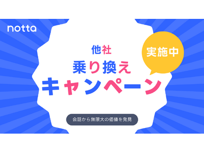 Notta株式会社(本社:東京都千代田区、代表取締役:Ryan Zhang、以下「当社」)は、AI議事録サービス「Notta」の法人ユーザーおよびAIボイスレコーダー「Notta Memo」のユーザー増加を記念し、より多くの企業・団体にご利用いただくために「乗り換え応援キャンペーン」を実施いたします。