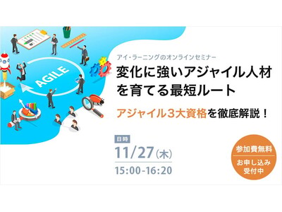 デジタル人材の育成をリードする株式会社アイ・ラーニング(本社:東京都中央区、社長:杉山 真理子、以下アイ・ラーニング)は、無料オンラインセミナー「変化に強いアジャイル人材を育てる最短ルート ~アジャイル3大資格を徹底解説!~」を2025年11月27日に開催いたします。