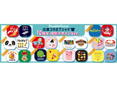 イオンは2025年11月20日(木)、「イオン」「イオンスタイル」約160店舗※1)にて、ヤングカジュアルウェアの専門店「Doublefocus(以下、ダブルフォーカス)」から、様々な企業とコラボレーションした「企業コラボTシャツ」シリーズの10周年を記念し、過去の発売年ごとに厳選した2柄、計20柄を復刻版として限定発売します。