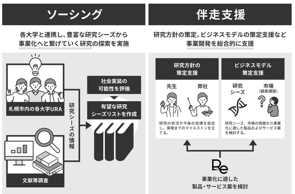ReGACY Innovation Group株式会社(本社:東京都千代田区、代表取締役:成瀬 功一、以下:ReGACY)は、札幌市と共同で、創薬・ライフサイエンス等分野におけるアカデミア発の研究シーズの事業化支援を通じて、スタートアップ創出を加速させる「健康医療バイオ分野における起業家育成事業(以下、本プログラム)」を実施しています。昨年度に続き2年目となる本年度は、札幌市内の研究者5名に対して伴走支援を開始しました。