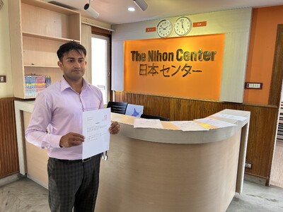 (内定通知書を受け取るGIRI MANI RAJさん)