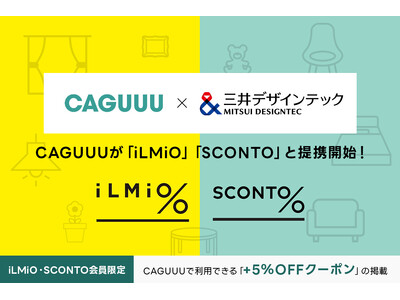 高品質でおしゃれな家具をリーズナブルに提供する家具ブランド「CAGUUU」(運営:CAGUUU株式会社、本社:東京都港区、代表取締役社長:中村勇輝)は、三井デザインテック株式会社(本社:東京都中央区/代表取締役社長:村元 祐介)が運営する会員制クーポンサービス「iLMiO(イルミオ)」および「SCONTO(スコント)」にて、CAGUUUで利用可能な「+5%OFFクーポン」の掲載を開始しました。