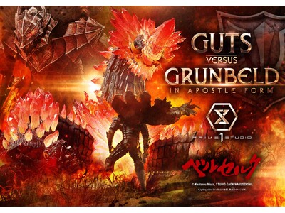 株式会社プライム1スタジオのハイエンドブランド「PRIME 1 STATUE(プライム1スタチュー)」。そのフォーマットのひとつアルティメットジオラママスターラインから、漫画『ベルセルク』の名シーン、「ガッツ VS グルンベルド (使徒形態)」をリリースいたしました。予約受付は11月11日よりスタート。商品の発売は2027年2月~2027年5月を予定しています。