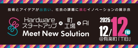 公益財団法人大田区産業振興協会は、2025年12月12日(金)、Tokyo Innovation Base(TIB)にて、スタートアップ向け展示会「Meet New Solution in TIB 2025」を開催します。アイデアを持つハードウエアスタートアップ、アイデアを形にする町工場、さらにAIやデザインの力で新たな付加価値を生み出す企業が一堂に会し、次世代のソリューション創出の最前線を体感できる1日です。全国から注目スタートアップや支援者が集結し、新たな協業や事業拡大のきっかけが生まれます。ぜひご来場ください。