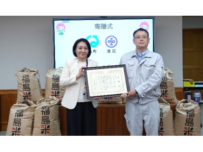 塙町産新米「コシヒカリ」300kgを港区へ寄贈していただきました。寄贈いただいたお米は区内の子ども食堂で提供し、子どもたちにおいしく食べてもらいました。