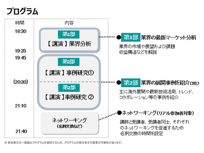 最新の市場分析や収益構造、展望、課題等とともに、各社の展開事例について学びます。