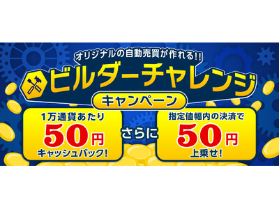 キャンペーン期間中に作成したビルダーによる自動売買の取引を対象に、1万通貨当たり最大100円をキャッシュバックする「ビルダーチャレンジキャンペーン」を、2025年11月11日(月)~11月28日(金)まで開催いたします。