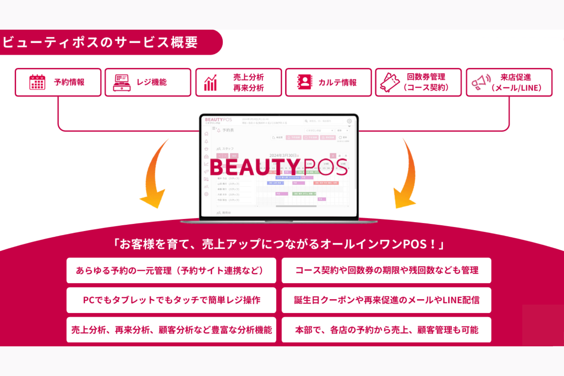 『BEAUTY POS』は、美容サロンの現場オペレーションをワンストップで支援する多機能型システムです。個人サロンから大規模店舗まで幅広く対応可能で、サロンの規模やスタイルに合わせて柔軟に運用できます。