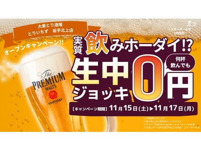 ? グランドオープン記念 “3日間限定” 生ビール0円キャンペーン