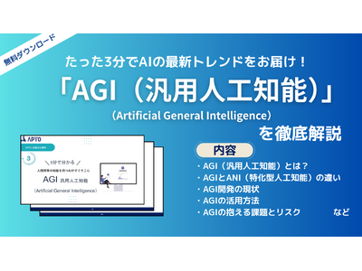 株式会社APTO(本社:東京都、代表取締役:高品良)は、「AGI(汎用人工知能)」に関する資料を無料で公開いたしました。
