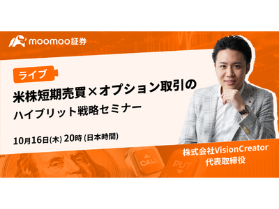 金融教育サービスを展開する株式会社VisionCreator(本社:東京都千代田区、代表取締役:武藤孝幸)2025年10月16日(木)に行われたmoomoo証券主催のウェビナーに、代表の武藤孝幸が登壇しました。本ウェビナーでは、moomoo証券の利用者に向けて「米株短期売買×オプション取引のハイブリット戦略セミナー」をテーマに、米国株の短期売買の考え方やオプション取引の基礎について、具体例を交えながら解説しました。
