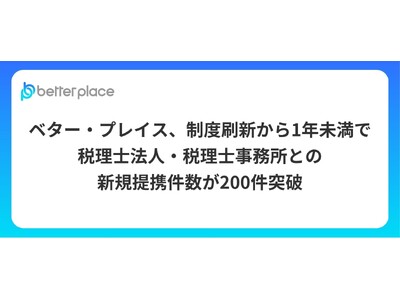 https://bpcom.jp/、以下、ベター・プレイス)は、税理士法人・税理士事務所との提携件数が、昨年11月の紹介パートナー制度刷新以降の新規提携件数として200件を突破したことをお知らせいたします。