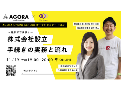 株式会社AGORAでは、2025年11月19日(水)に「株式会社設立」をテーマにした創業WEBセミナーを開催します。