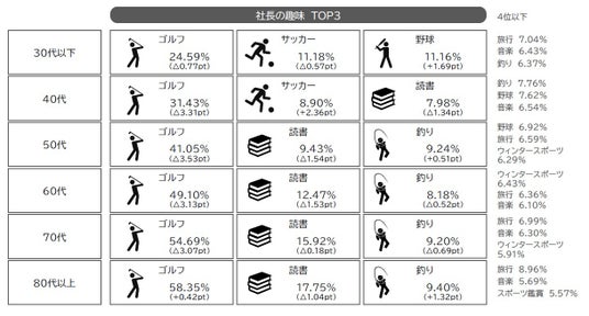 社長の「趣味」、全年代で「ゴルフ」トップ