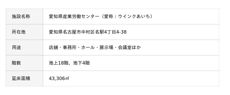当社グループの日本管財及び東京キャピタルマネジメントは、PFI事業(民間資金活用事業)として愛知県が所有する愛知県産業労働センター(愛称:ウインクあいち)の維持管理・運営業務を担っています。今回は運営業務を担当している東京キャピタルマネジメントがウインクあいちとして初めて本イベントに出展します。